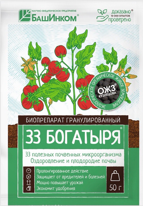 Он содержит 33 штамма полезных почвенных микроорганизмов на органическом носителе в форме гранул.