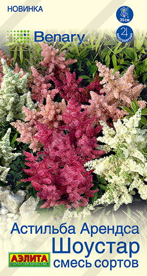 Пользуется заслуженным вниманием у цвеоводов, так как используется при составлении практически всех садовых композиций. Растения среднерослые, высотой около 30-35 см. Предпочитают полутень и прохладу, устойчивы к болезням и вредителям. Блестящие рассеченные листья собраны в густую прикорневую розетку. Длина пушистых метельчатых соцветий достигает 15-20 см. Пик цветения взрослых растений приходится на июль. Астильбу можно размножать делением куста каждые 3-4 года. Она хорошо растет во влажной почве вокруг декоративных водоемов, образует выразительные бордюры вдоль дорожек. Смесь красочных соцветий великолепна в букете.