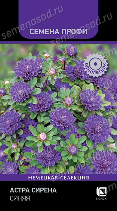 Идеальная клумбовая астра высотой 40-50 см, кусты правильной Y-образной формы. На одном растении формируется 50 и более цветков. Цветы махровые, синей окраски, диаметром 2,5-3 см. Растения устойчивы к заболеваниям и погодным условиям. Цветение с августа до октября.
