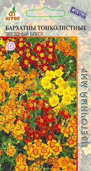 Однолетник цветы диаметром 2 -3 см. Растение изящное, цветение длительное. Причём бутоны и молодые цветки находяться на переферии куста, а отцветшие - внутри, что придаёт растению постоянно свежий и аккуратный вид. Бархатцы тонколистные обладают своеобразным, сильным и приятным ароматом. Бархатцы неприхотливые, быстрорастущие, засухоустойчивые и светолюбивые растения, но выносят небольшое затенение, поэтому ими можно оформлять участки с северной стороны строений. Семена на рассаду высевают в начале апреля, но для более раннего цветения их можно посеять в марте.В открытый грунт можно посеять в мае. Всходы появляются через 10-14 дней при температуре 16-18°С. В период выращивания рассады желательно сделать 2-3 подкормки комплексными минеральными удобрениями. В грунт высаживают, когда минует угроза заморозков. Бархатцы гармонично выглядят в любых цветниках. Их можно использовать в контейнерах и корзинах, высаживать в балконные ящики. Хорошо и долго стоят в срезке. Кроме того, бархатцы оказывают санитарное воздействие на почву.