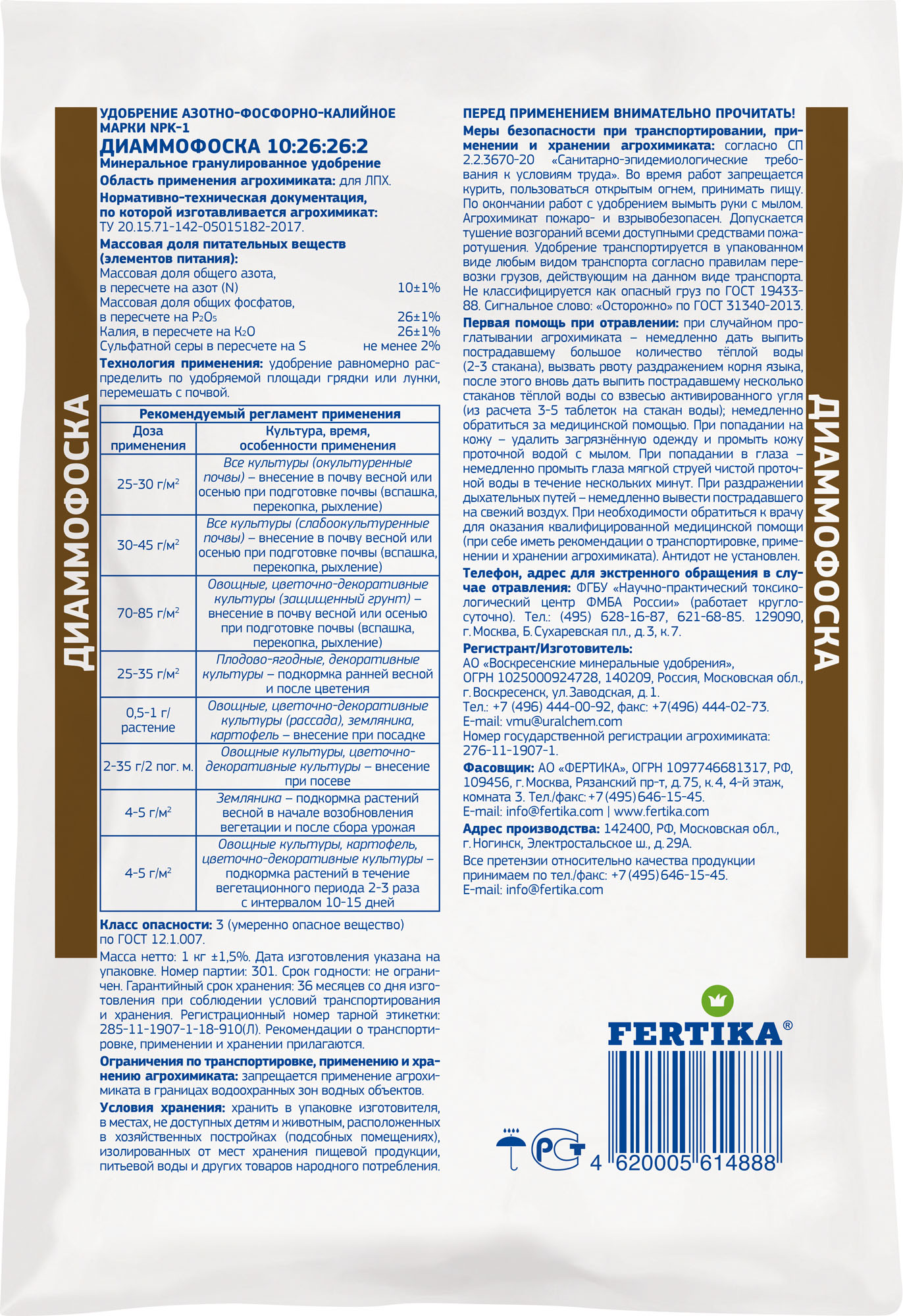 N–10%, P2O5–26%, К2О–26%, S–2%.