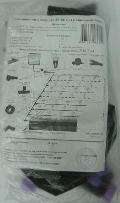 Используется совместно с комплектом капельного полива КПК-24 или КПК-24К.