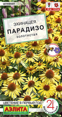 Высотой до 70-80 см. Притягивающие взгляд крупные желтые соцветия-корзинки достигают диаметра 9-12 см. Культура отличается не только высокой декоративностью, но и целебными свойствами. Гармонично смотрится в миксбордерах и аптекарских грядках. Привлекает на участок полезных насекомых-опылителей. Подходит для срезки. Куст прекрасно зимует под снежным покровом, в малоснежную зиму лучше обеспечить легкое укрытие.