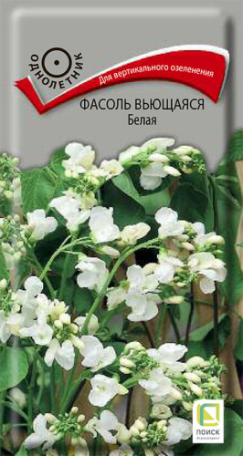 Стебли тонкие вьющиеся, поднимаются на высоту 2,5 м. Листья многочисленные, темно-зеленые. Цветы белые в пазушных кистях на длинных цветоносах. Цветет обильно с июля до сентября. Декоративную ценность представляют и плоды растения - крупные, шероховатые бобы. Используют для вертикального озеленения и устройства пирамид на газонах.