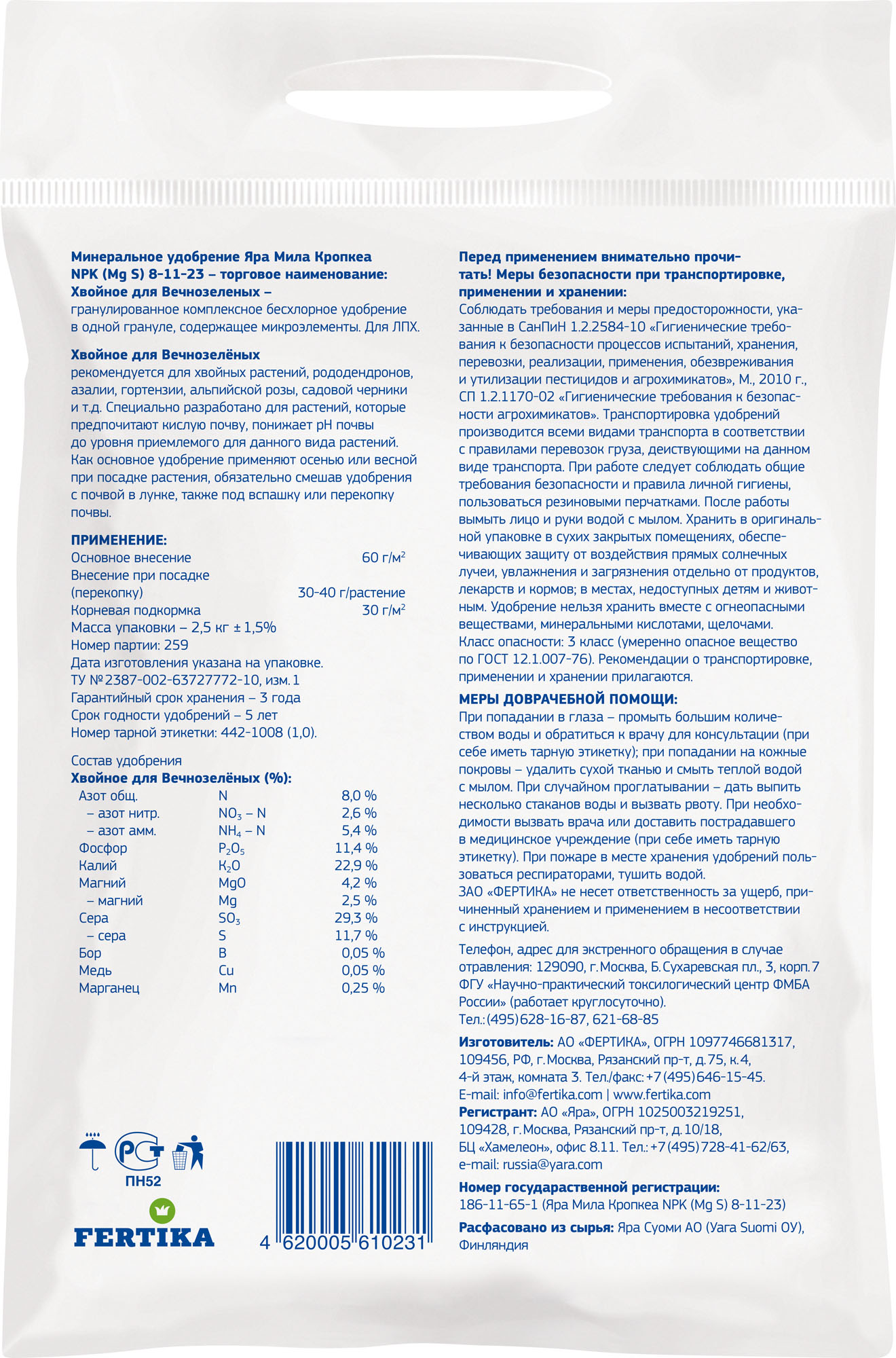 • Рекомендовано для всех хвойных растений, рододендронов, азалий, гортензий, альпийской розы, садовой черники и др. в постоянно меняющихся климатических условиях.