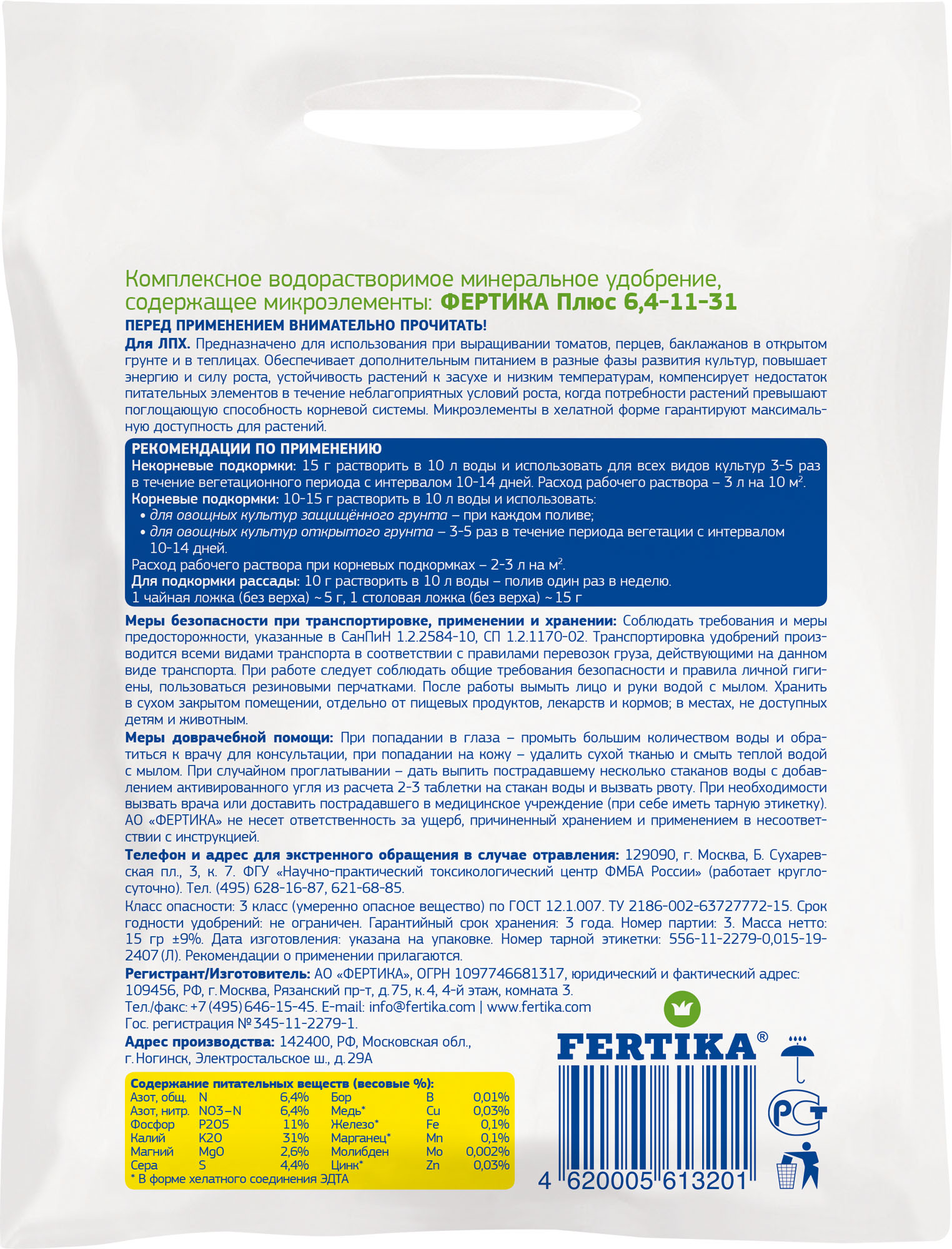 NPK 6,4:11:31+2,6 MgO+МИКРО.