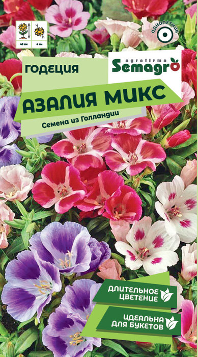 Годеция "Азалия микс" - это сорт с крупными, махровыми цветками различных оттенков розового цвета.