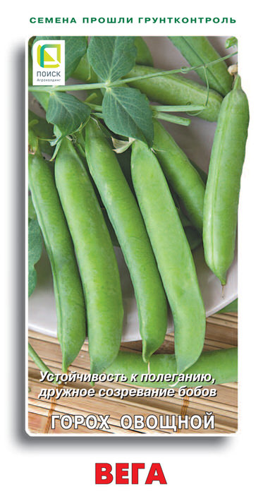 Среднеранний сорт. Период от полных всходов до технической спелости горошка 45-50 дней, до созревания семян 73-90 дней. Стебель высотой до 65 см, с укороченными междоузлиями, облиственность средняя. Бобы лущильные, прямые с заостренной верхушкой, длиной 7-9 см, шириной 1,3-1,5 см, темно-зеленые. На растении 6-11 бобов, в бобе 7-10 зерен. Вкусовые качества зеленого горошка в свежем и консервированном виде хорошие. Универсальное использование.