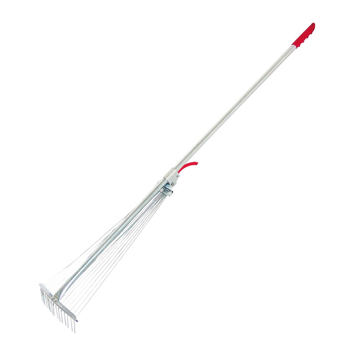 Регулируемые веерные грабли на 15 зубьях со стальным черенком, подходят для уборки листвы и сгребания крупного мусора, а так же для аэрации почвы. Необходимое положение зубьев фиксируется втулкой на черенке, обеспечивая ширину веера от 20 до 56 см. Длина веера: 45 см. Материал рабочей части: пружинная сталь, оцинкованная для защиты от коррозии. Длина черенка: 110 см. с пластиковым наконечником.