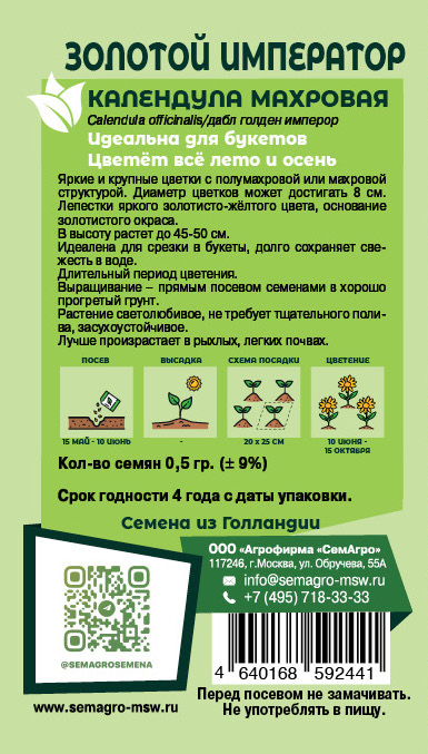 Календула махровая Золотой Император