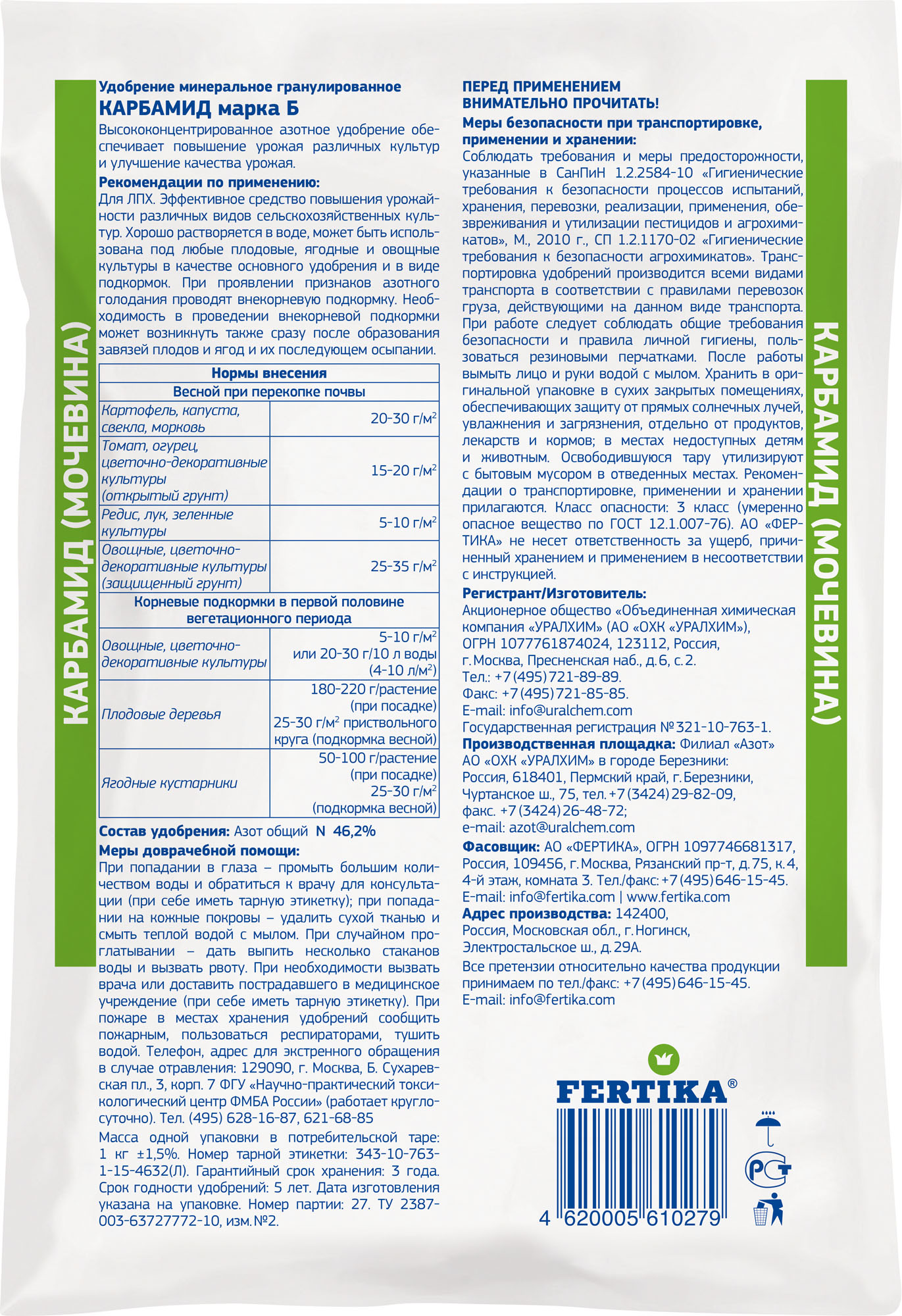 Высококонцентрированное азотное удобрение.