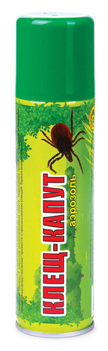 Репеллентное средство в аэрозольной упаковке для защиты людей от иксодовых клещей и блох, а также от комаров, мокрецов, москитов. (альфа-циперметрин — 0,2%, N, N — диэтилтолуамид — 7%) Прошел гос.экспертизу и зарегистрирован Роспотребнадзором РФ