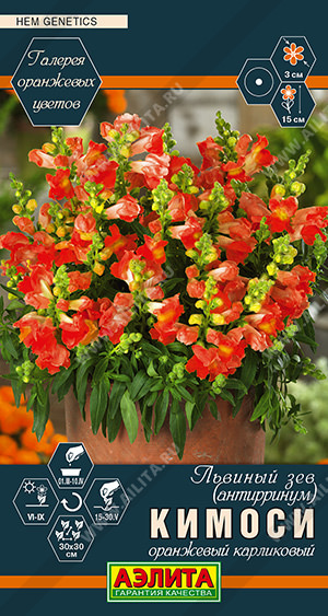 Карликовый львиный зев иностранной селекции с крупными оранжевыми соцветиями. Высота кустиков не более 15 см. Ароматный однолетник привлекает полезных насекомых-опылителей. Цветки диаметром до 3 см, собраны в плотные и яркие кисти. Сорт подходит для украшения низкорослых клумб, рабаток и бордюров солнечной экспозиции. Это отличный выбор для контейнерной культуры на балконах и в саду. Для продления периода декоративности желательно удалять отцветшие побеги.