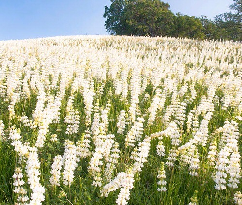 Люпин семейства Бобовые.Это однолетник, вырастающий до 2 м. Стебель прямой опушенный, листья опушенные пятилисточковые разделенные. Цветы белые, собранные в тонкие прямые соцветия.