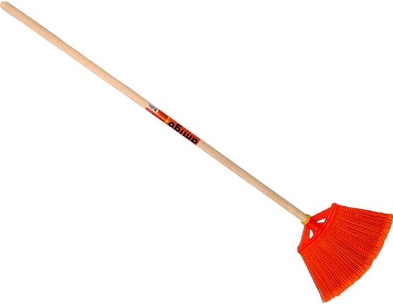 Благодаря жесткой щетине хорошо заметает пыль и грязь, поэтому может использоваться в парках, скверах, на дачных участках.
