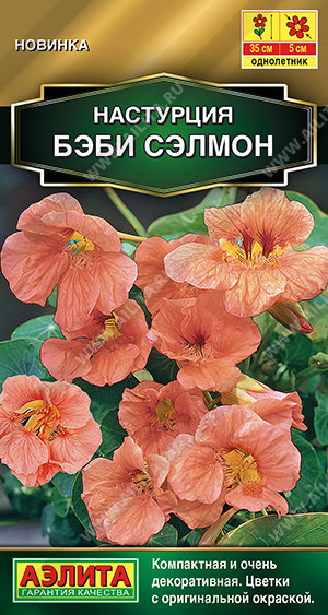 Компактный летник с ярко-зелеными листьями и крупными цветками ? 4-5 см. Растение кустовое, высотой около 25-35 см. Цветет обильно, с июля и до заморозков. Настурция нетребовательна к плодородию почвы, солнцелюбива, но легко переносит полутень. Сорт великолепно подходит для оформления балконов, клумб и бордюров. Используется не только как декоративное или съедобное растение, но и как лекарственная культура.