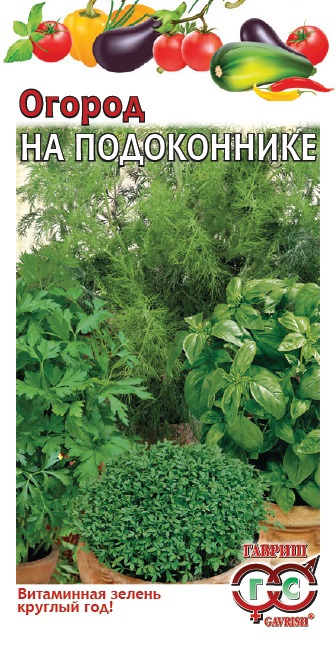 Кориандр, кресс-салат, петрушка, базилик, укроп для выращивания на подоконнике.