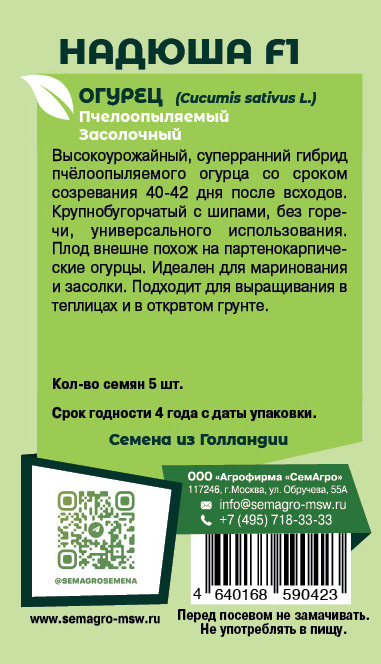 Ранний гибрид (40-42 дня), крупнобугорчатый с шипами, без горечи, универсальное использование, Рекомендуется для выращивания в открытом грунте вертикальным и горизонтальным способами.
