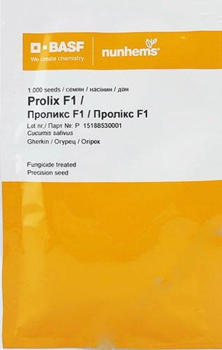 Среднеранний гибрид огурца корнишона с очень высокой регенеративной способностью. Вегетативный срок 40-42 дня. Растение индетерминантное, средневетвистое, женского типа цветения. Число женских цветков в узле преимущественно 2-3. Лист средней длины, зелёный. Зеленец короткий, цилиндрический, тёмно-зелёный с очень короткими полосами, мелкобугорчатый. Рекомендуемый размер для сбора 6-12 см. 2,5-3,2 рас./м2. Очень неприхотлив в выращивании. Партенокарпический гибрид со вкусом пчёлоопыляемого. Подходит для переработки зеленцов и корнишонов. Обладает высокой устойчивостью (HR) к настоящей мучнистой росе (Px), кладоспориозу (Ccu) и промежуточной устойчивостью (IR) к вирусу огуречной мозаики (CMV).