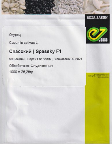 Среднеранний (41- 45 дней от всходов до плодоношения), пчелоопыляемый сорт смешанного типа цветения. Рекомендуется для выращивания в весенне-летних теплицах, под пленкой и в открытом грунте. Ценится за сильный огуречный аромат, высокие засолочные качества. Хрустящие и прятные на вкус, они— отличное подспорье в зимний период. Растение среднерослое и среднеплетистое. Зеленец цилиндрический, без горечи, длиной 7-9 см, крупнобугорчатый, опушение черное. Масса 80-95 г. Вкусовые качества свежих и консервированных плодов отличные. Схема посадки 40x40 см или 30x70 см. Урожайность 3,3-4 кг/м. Устойчив к основным заболеваниям огурца. Упаковка семян и инструкция на английском языке. (Cucumis sativus).