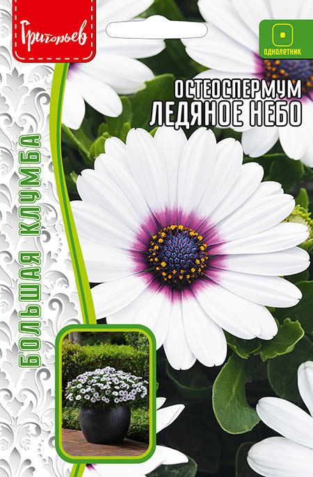 Растение густооблиственное, образует низкорослый раскидистый кустик высотой 40-60 см. Цветки крупные, диаметром до 8 см, с тёмным красно-фиолетовым центром и белыми язычковыми венчиками, с нижней стороны покрытыми розовыми прожилками. Каждый цветок сохраняет декоративность на протяжении 5-7 дней, после чего отцветает, а на его месте или рядом раскрываются новые. Растение не теряет декоративности в непогоду. Выращивают в различного рода цветниках, вазонах и кадках на террасах и внутренних двориках, балконных ящиках. Добавит изящества и свежести любой садовой композиции!