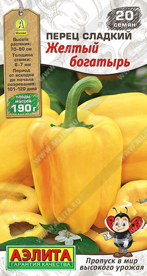Раннеспелый – период от всходов до начала плодоношения 101-120 дней. Растения полураскидистые, в теплице высотой 70-80 см. Плоды* призмавидные, гладкие, глянцевые, массой 110-190 г. В технической спелости темно-зеленые, в биологической – оранжево-желтые. Толщина стенки 6-7 мм. Мякоть сочная и очень вкусная. Сорт устойчив к ВТМ. Рекомендуется для потребления в свежем виде, запекания и консервирования. Урожайность в теплице 5-7 кг/м2.