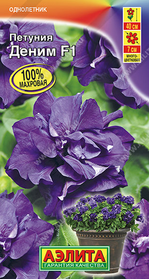 Гибридная обильноцветущая петуния Деним поражает своими характеристиками. Это чудесное растение отличается компактными побегами с аккуратными листочками и изящными махровыми цветками, которых образуется так много, что кустик напоминает цветущее облачко. Гибрид отличается прекрасным внешним видом, ранним, продолжительным и очень дружным цветением, неприхотливостью и устойчивостью к неблагоприятным погодным условиям. Петуния незаменима в оформлении клумб, бордюров, вазонов, кашпо и балконных ящиков.