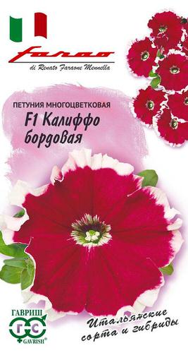 Многоцветковые петунии F1 Калиффо — итальянские красавицы для создания уютного уголка солнечного средиземноморья в саду и на балконе. Аккуратные «точеные» кустики густо покрывают нарядные цветки диаметром 5 см. Глубину оттенка подчеркивает бархатистая текстура цветков, а яркий белый ободок по краю придает контрастности. Посев проводят поверхностно, не заделывая, с февраля по март. При зимнем посеве всходам необходима подсветка. Всходы появляются через 7-12 дней. На постоянное место высаживают, когда минует опасность заморозков. Цветет с конца мая весь сезон. Светолюбива и достаточно засухоустойчива. Предпочитает легкие, плодородные, хорошо дренированные почвы. Украсит контейнеры, вазоны, балконы, подоконники, рабатки, бордюры.