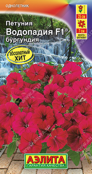 Абсолютный хит!Уникальность этих гибридов в том, что новые цветоносные побеги образуются без прищипки в пазухах листьев в середине куста, не оставляя пустот. Растения формируют пышные кустики, высотой 15-25 см. Поникающие побеги длиной до 70 см полностью усыпаны яркими насыщенными цветками диаметром 7 см и спускаются восхитительным водопадом. Гибриды устойчивы к повышенным температурам и неблагоприятным погодным условиям. Петунии Водопадия F1® наилучшим образом подходят для подвесных кашпо и корзин.