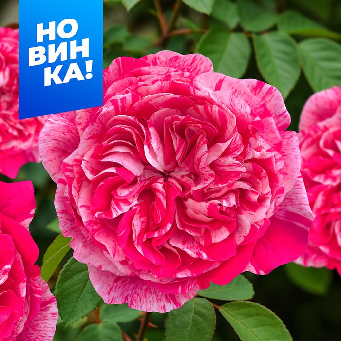 Описание: Плетистая роза с крупными соцветиями по 6-15 цветков. Бутоны чашевидные, крупные, сильно махровые (до 100 лепестков), оригинальной окраски - насыщенно-розовой с бело-кремовыми штрихами. Аромат интенсивный, с нотками яблока и скошенной травы. Куст с темно-зелеными глянцевыми листьями. Побеги хорошо зимуют под укрытием.