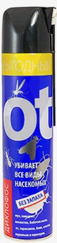 средство инсектицидное для уничтожения в помещениях летающих и не летающих насекомых: мух, комаров, москитов, бабочек моли, ос, а так же тараканов, блох, клопов, муравьев и кожеедов.