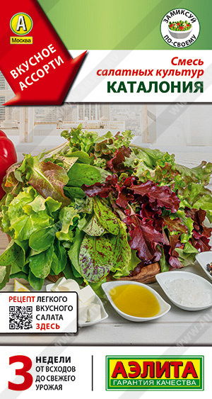 Состав: кервель Ароматный; полевой салат Маленький принц®; салат Букет; салат Витаминный; салат Гранатовый сад®; салат Грация; салат Китеж®; салат Мишутка; цикорный салат Диетический; щавель Зеленая сказка®.