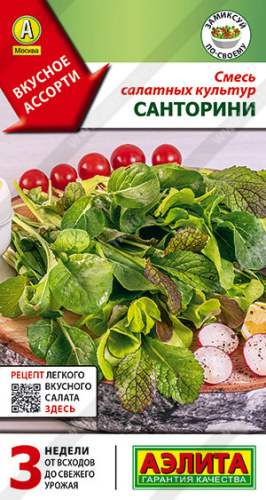 Состав: горчица сарептская (салатная) Витамин®; горчица сарептская (салатная) Красный бархат®; горчица сарептская (салатная) Частушка; капуста китайская Аленушка; капуста китайская Четыре сезона; капуста японская Салад Мизуна; репа Бирюза; репа Салад Комацуна; салат Аттракцион; салат Берлинский желтый; салат Мишутка; салат 4 Сезона.