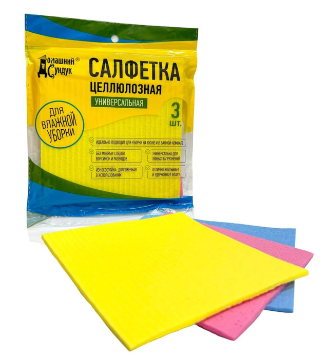 Салфетка универсальная целлюлозная без остатка впитывает влагу.