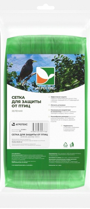Она обеспечивает надежную защиту грядок, кустарников и деревьев от дроздов, воробьев и других птиц.