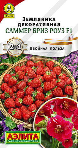 Его уникальность в полумахровых крупных розовых цветках. Они расположены выше листьев и украшают аккуратный кустик (высотой 25-30 см) до самых морозов. Яркость оттенка стабильна под воздействием непогоды. Плодоношение раннее, очень обильное. Ягоды конической формы, массой до 20 г. Мякоть плотная, ароматная, сладкая. Гибрид подходит для выращивания в саду, огороде, в том числе, в ограниченном объеме грунта, в домашних условиях. Для оздоровления растений 1 раз в 4-5 лет требуется проводить их обновление семенным размножением.