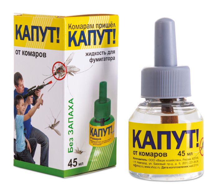 Полная гибель комаров в помещениях — через 20-30 мин в зависимости от площади. После применения отсоединить от фумигатора, плотно завернуть крышку. В присутствии людей (взрослых) может быть включен всю ночь при открытых окнах (форточках).